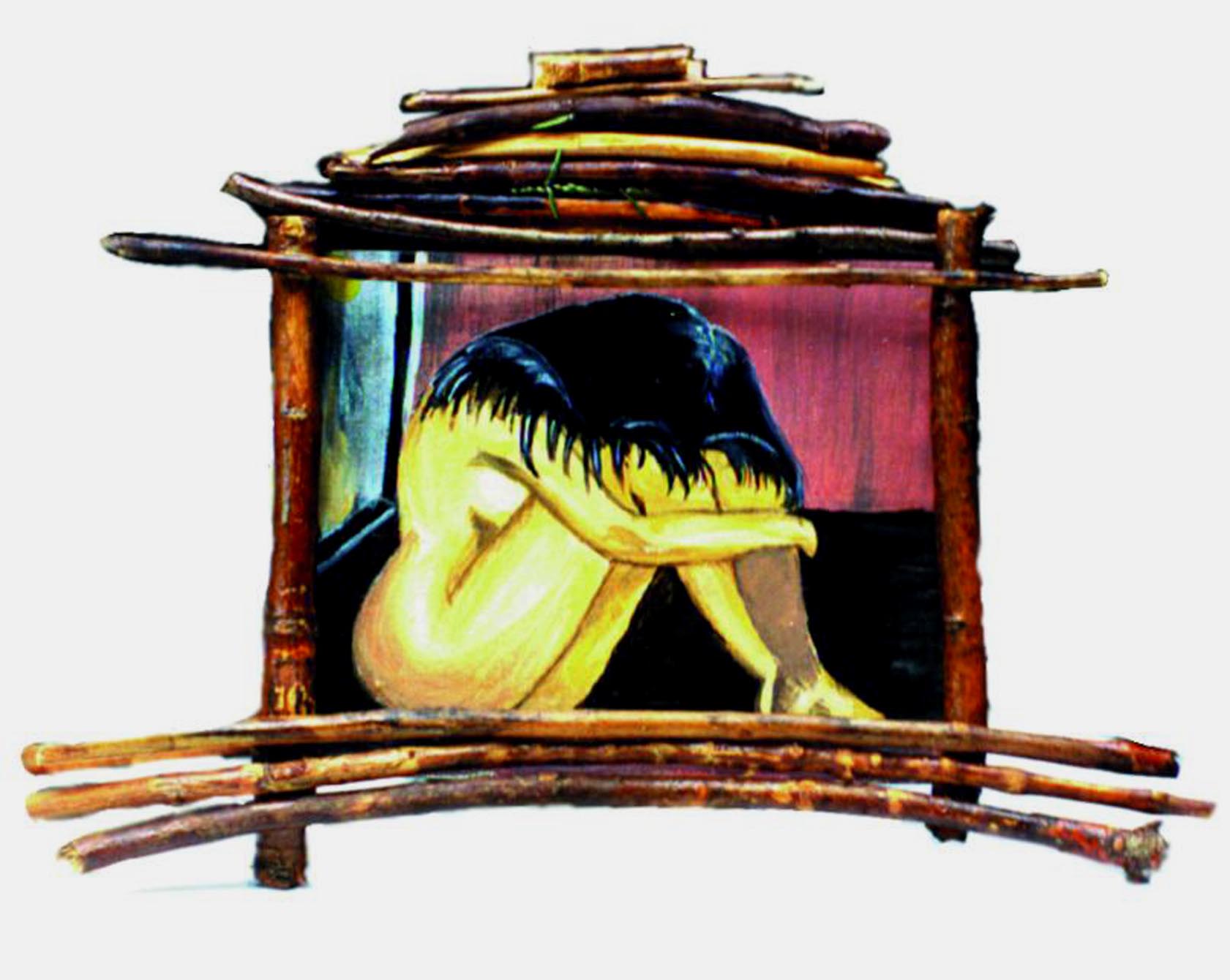 Mirrored Girl Acrylic and sticks ***1993 *** 6" x 4"
